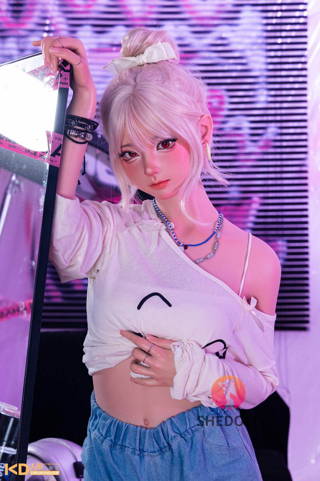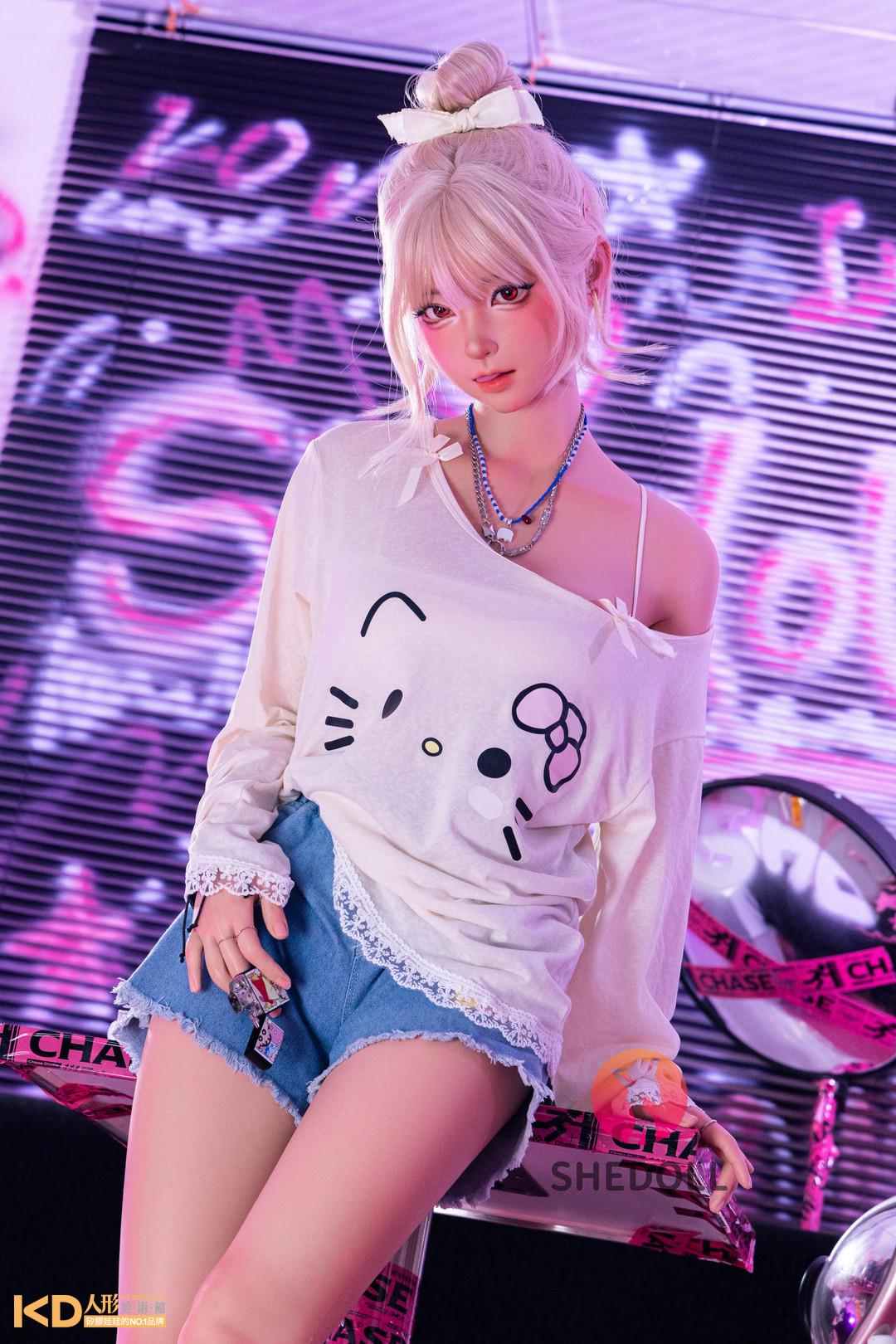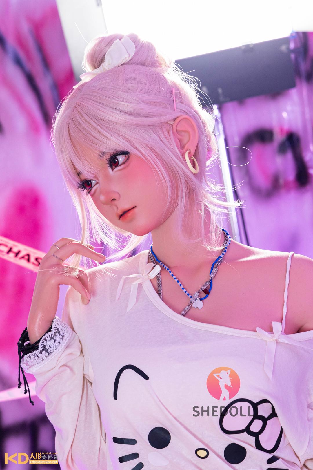 SHEDOLL 158cm Cカップ 江小棠(Jiangxiaotang)2.0ヘッド 口開閉&口腔模擬付き 可愛い お団子ヘア シリコンラブドール 小麦色肌